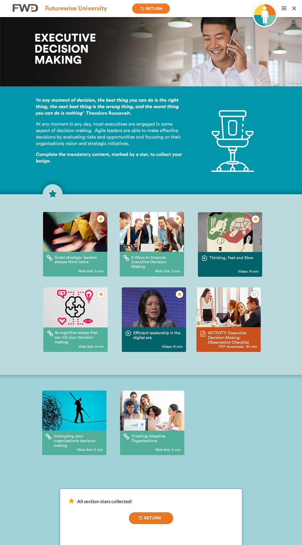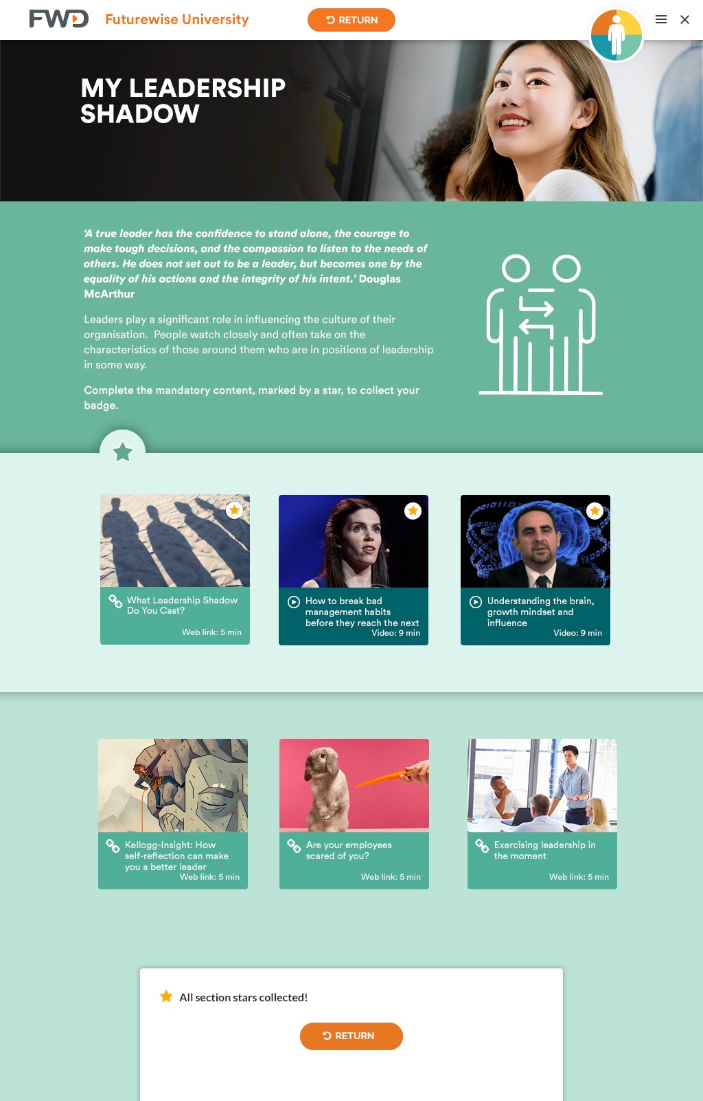 Created six responsive learning modules with dashboards and interactive layouts. Delivered engaging UI/UX solutions for FWD’s internal training program.