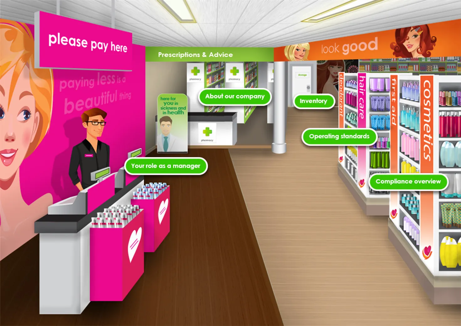 Designed dashboards, learning modules, and store illustrations to boost internal training engagement. Combined vector and hand-drawn illustrations with clear UI design.