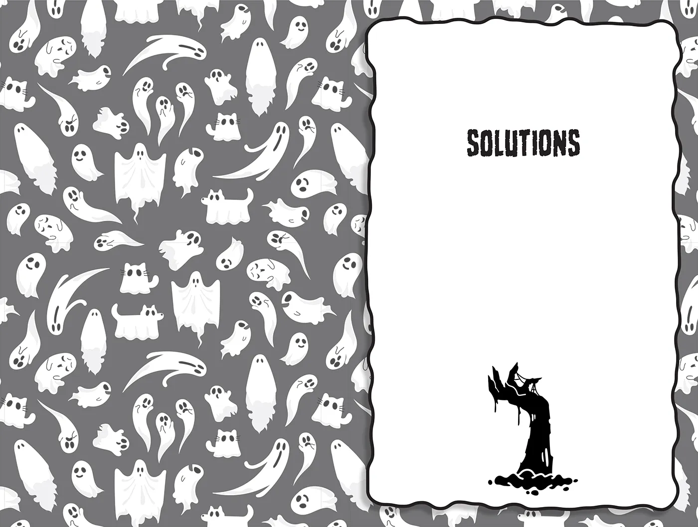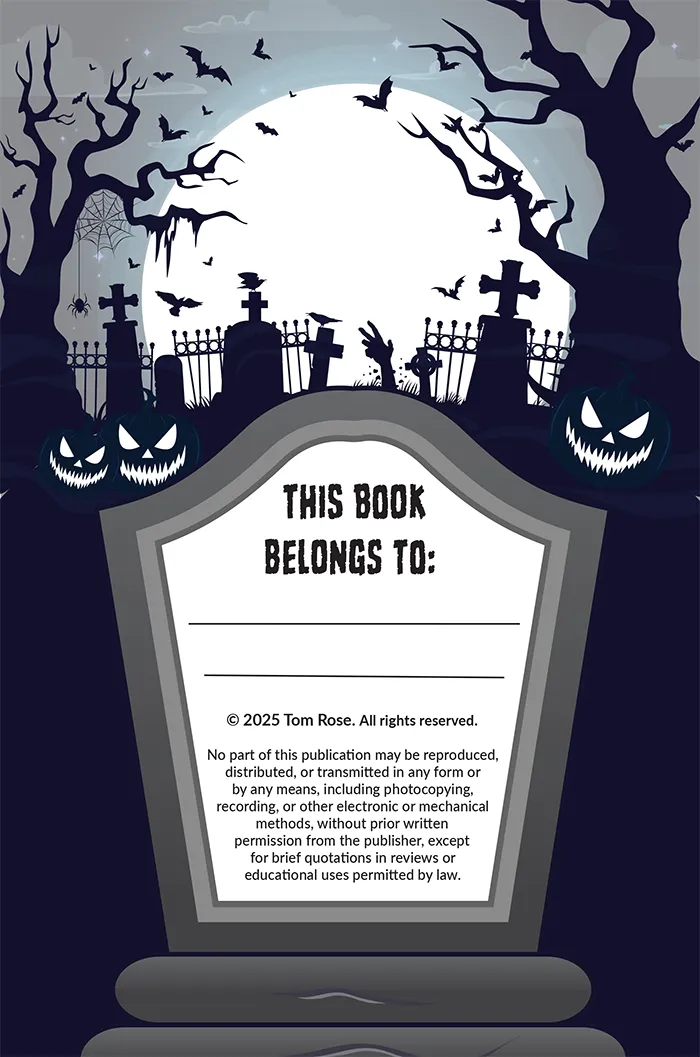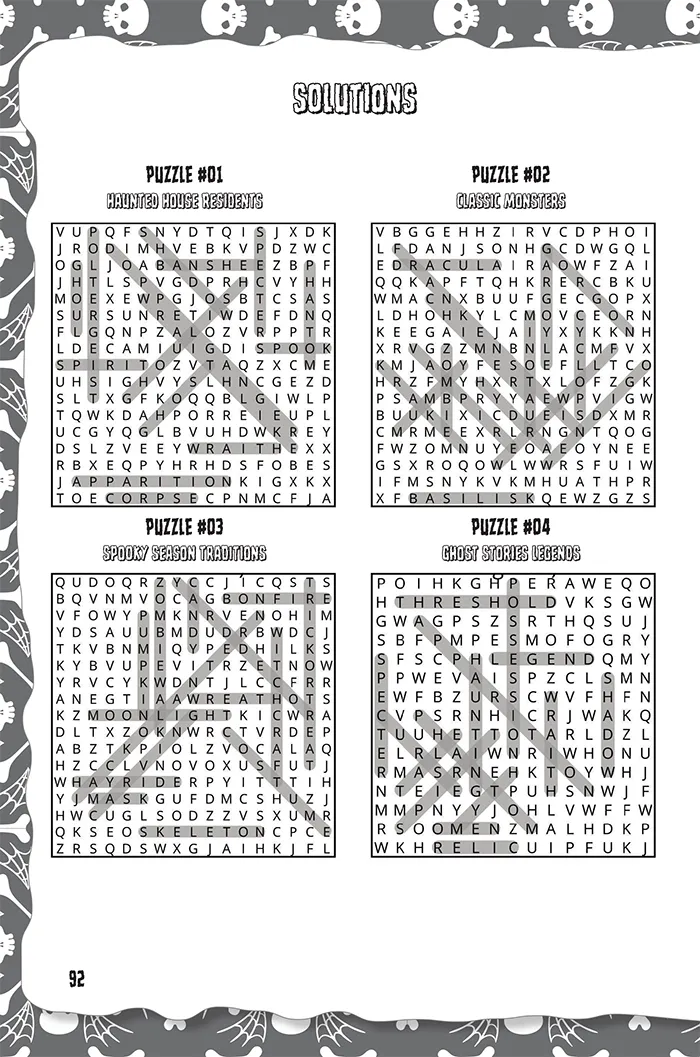 The cover was created in Adobe Photoshop, combining photo manipulation, compositing, and tonal adjustments to establish a cohesive Halloween aesthetic. Background elements and vector illustrations were developed in Illustrator and refined within InDesign before being assembled into structured page layouts. Adobe InDesign was used to build the final book architecture, manage typography systems, construct puzzle grids, and generate press-ready PDF files.